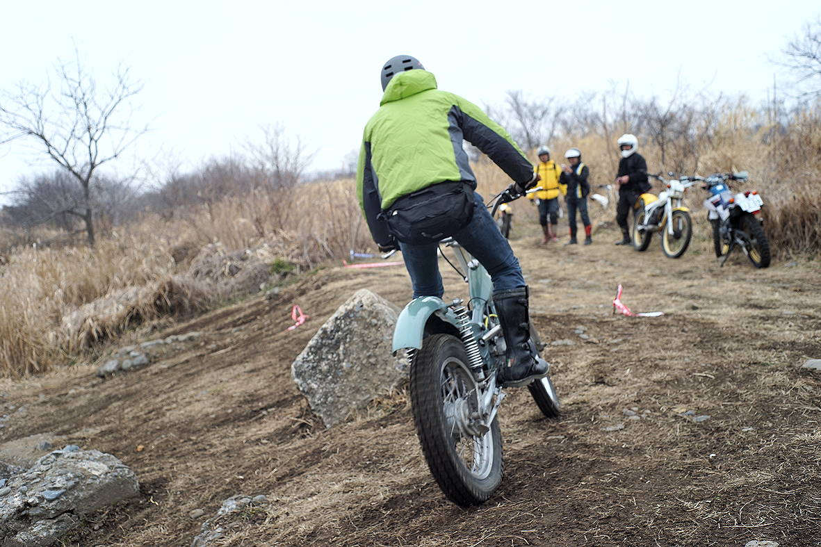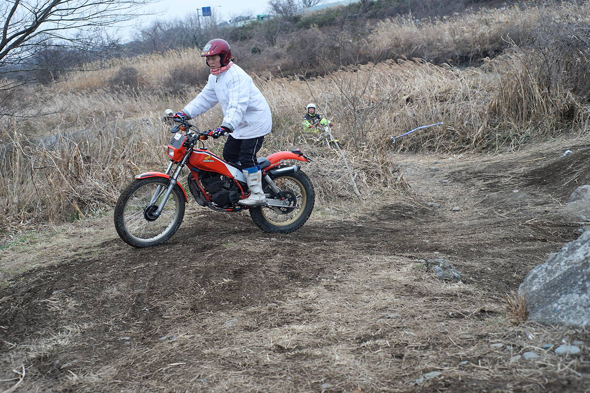 もうひとつ、これまでトライアルをやっていても、大会に出ることがほとんどなかったという人が、毎月せっせと通ってくれるようになりました。トライアル大会はむずかしくてたいへんなものだから、年に1回、イーハトーブトライアルを楽しめれば、という人はけっこう多いのだと思います。相模川は平なので、セクションづくりさえまちがえなければ、おっかないセクションにはなりません。年イチのトライアルライダーのみなさんが、年に何回かのトライアルライダーになり、それではずみがついて、1年中トライアル遊びをしてくれる立派な(腕前はともかく)トライアルライダーになっていく様も、ずいぶんと見てこれました。頑なにやさしい(技術的にというか、初心者やへたくそに)トライアル大会を続けてきてよかったなぁと思うところです。