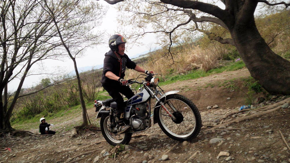 河野さんは電動トライアラーのEMで参加してくださって(お歳を感じさせない)カッコいいところを見せてくれたのだけれど、1ラップ目の最後に竿立ちスロットル全開で林に突っ込むという大技を(本人の意思とは関係なく)披露してあわや大事故かと焦ったのだけど、本人は尻もちをついただけでけろっとしていてホッとしたり(バイクはちょっと痛いことになっていた)
