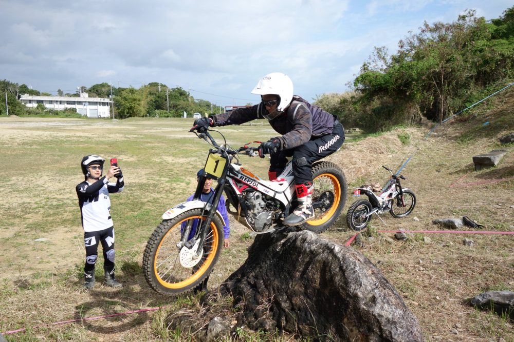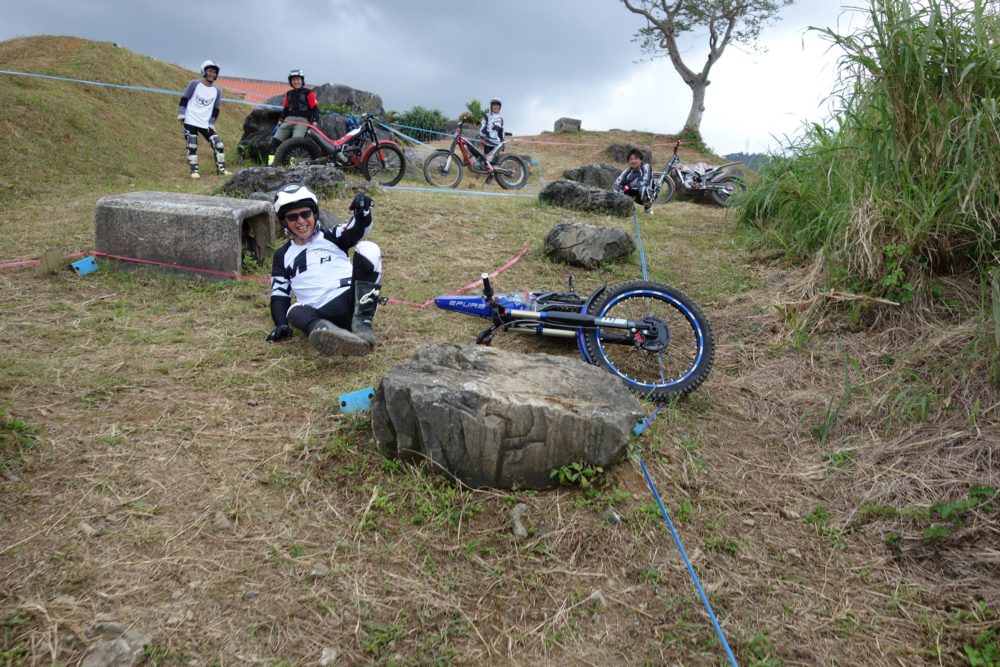 優勝は山城選手、トライアル協会で一番のイケメン、もちろん走りもかっこいい男の走りを見せてくれます。コースは厳しかったので、流石の山城選手でも若干の減点はしてしまいましたが、よく抑えた走りでの優勝でした。2位以下は混戦でした。その混戦から抜け出したのは、ベテラン津嘉山選手です。ベテランらしい粘りの走りでした。3位はエキスパートの中では若手の高山選手、まだまだ足りないと悔しそう、最近はジムにも通いかなりしぼられて走りもアップグレードしています。ベテラン選手はかなり手強いが少しずつ近づいている次回は優勝したいとのことでした。