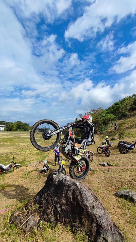 優勝は山城選手、トライアル協会で一番のイケメン、もちろん走りもかっこいい男の走りを見せてくれます。コースは厳しかったので、流石の山城選手でも若干の減点はしてしまいましたが、よく抑えた走りでの優勝でした。2位以下は混戦でした。その混戦から抜け出したのは、ベテラン津嘉山選手です。ベテランらしい粘りの走りでした。3位はエキスパートの中では若手の高山選手、まだまだ足りないと悔しそう、最近はジムにも通いかなりしぼられて走りもアップグレードしています。ベテラン選手はかなり手強いが少しずつ近づいている次回は優勝したいとのことでした。