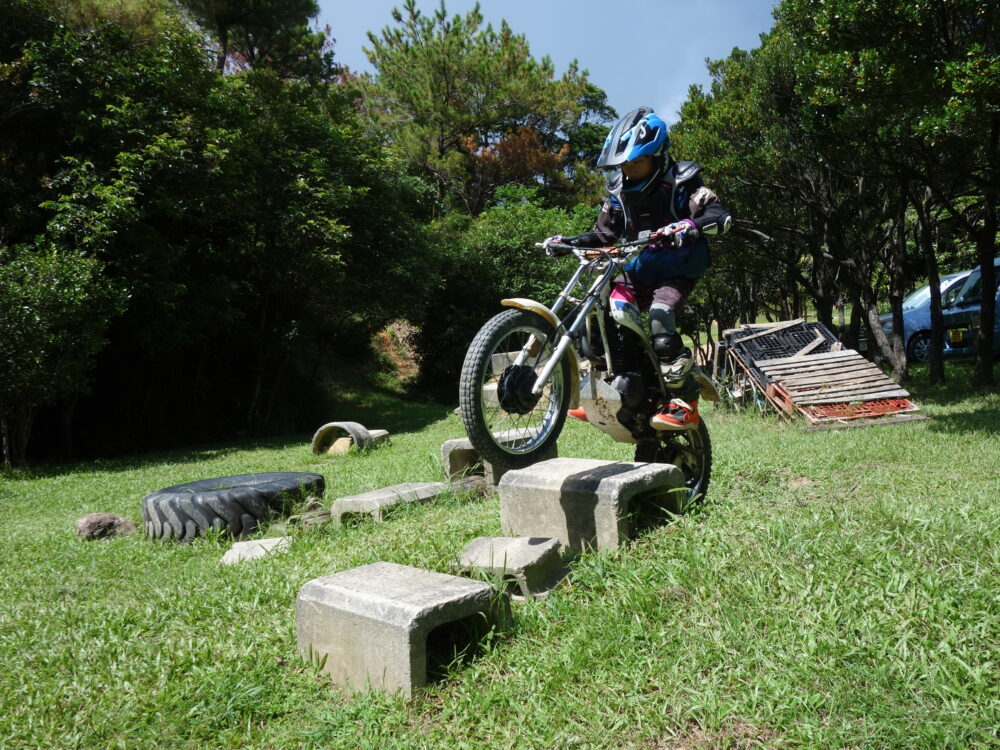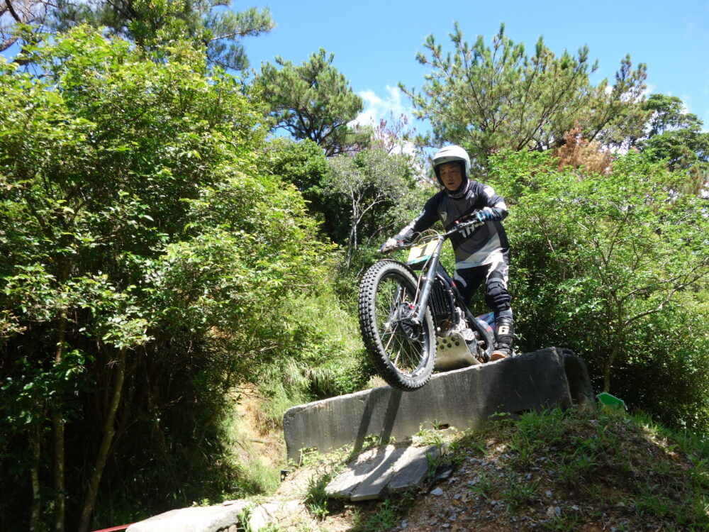 沖縄トライアル大会第8戦がブセナトライアルランドにおいて開催されました。天候は晴れ。5セクションの2トライを設定、むし暑い日だったので、セクションの数を減らすか迷いましたが、参加選手はやる気満々設定通りいこうということで、熱中症対策を呼びかけながら脱落者を出すことなく熱い戦いを繰り広げた大会になりました。