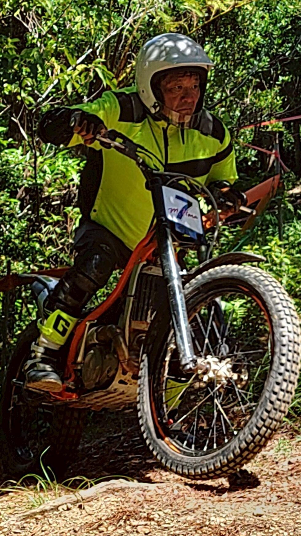 7名のライダーが参戦、優勝は渡口選手でした。ベテランらしい落ち着いた走り、マシンをしっかり押さえこみ、見ている側からも安心して見ていられる華麗な走りでした。本人は、納得していない部分もあったようですが、若手選手のとてもいいお手本になっている渡口選手でした。2位は久しぶりの参戦、森選手でした。新車のホンダのトライアルマシンを引っ提げて来ました。2サイクルから4サイクルへの乗り換えで、まだ慣れてませんとしながらも、いやいや、なかなか乗り込んできています。4サイクルの低速の粘りとグリップ力を生かした走りです。なんでもないところで足が出てしまいクリーンが少なかったとのことでしたが、乗り始めのマシンをよく操っていました。3位は仲地選手でした、2位と1点差、優勝を意識しすぎたか好調を維持していただけに悔しい3位でした。これが実力まだまだ修行が足りないということですよ、気持ちを切り替えしっかり練習してきます。との仲地選手でした。
