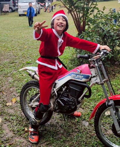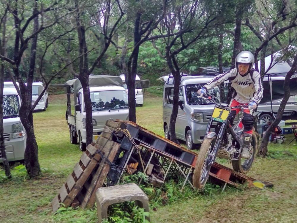 5名のライダーが参戦、優勝は大城選手でした。連勝がかかっていた大会、落ち着いた走りで優勝を勝ち取りました。あわやオールクリーンかと思われましたがリズムが崩れ同一箇所で減点をたたいてしまいました。2位は宮城選手、調子は悪くなかったと思いますが、滑るコースにやられ小さな減点を積み上げてしまいました。実力は十分ですので、優勝した大城選手とともにジュニア昇格となりました。次回から新しいステージで見せてくれると思います。3位は具志堅選手、こちらも僅かな差で3位となりました。泥んこの走りにうまく対応出来てなかった。しっかり練習して次回頑張ります。とのことでした。