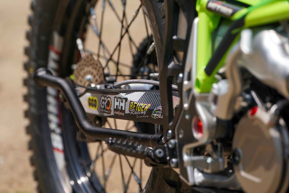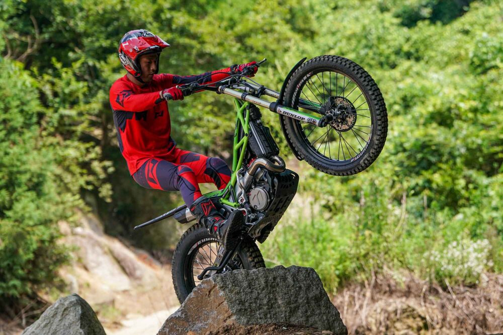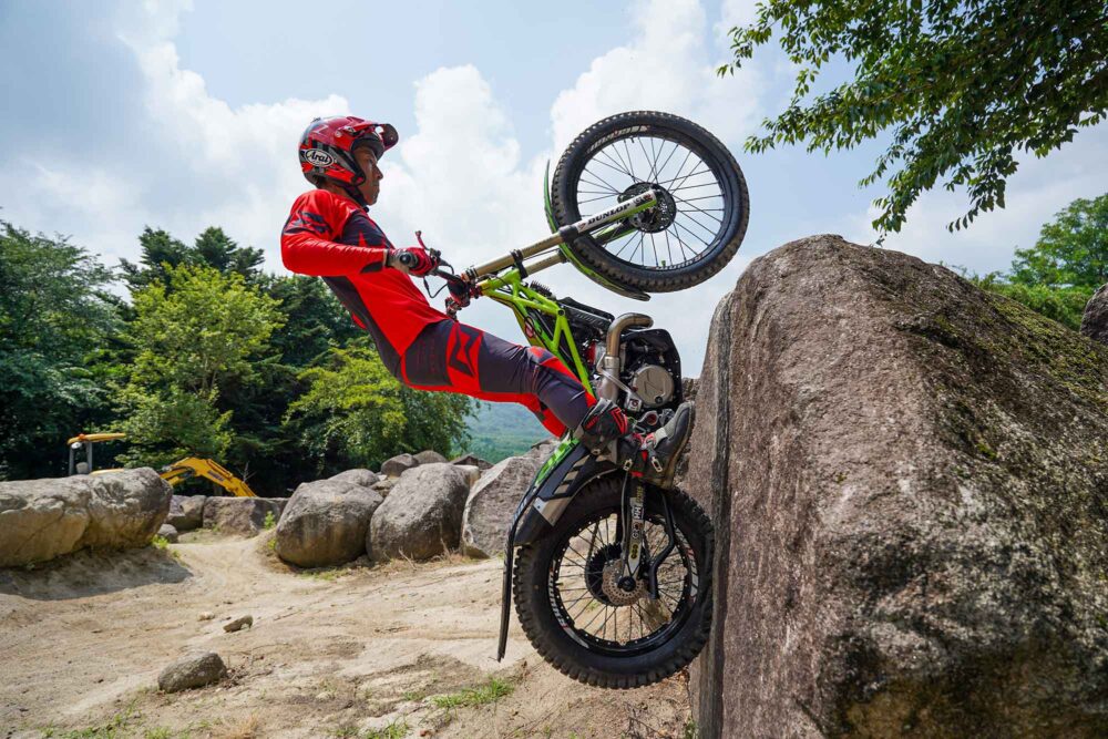 「この落ち着いた乗り味は、フロントをつったりダニエルをしたりする以外にも、落ち着き傾向ゆえの特徴がでてくる。いろんな動きがゆっくりしている。IASのセクションを走破するようなタイミングからすると、ちょっと待ちきれないくらいのスピード感なんだけど、実際のところ、そこまで早い動きができるライダーは多くはないから、この仕様は多くの人にとって歓迎できるはず。この、遅いという感覚と重たいという印象はちがうんだけど、ふだんぼくのライディングを見ている人からすると、いろんなタイミングで待っている時間が長いから、重たそうに乗ってるように見えるかもしれない。ただ乗ってる側からすると、マシンのタイミングに合わせているだけで、けっして重たくは感じていない。早く動けない多くのライダーにとっては、ますます重い印象はないんじゃないかと思う」