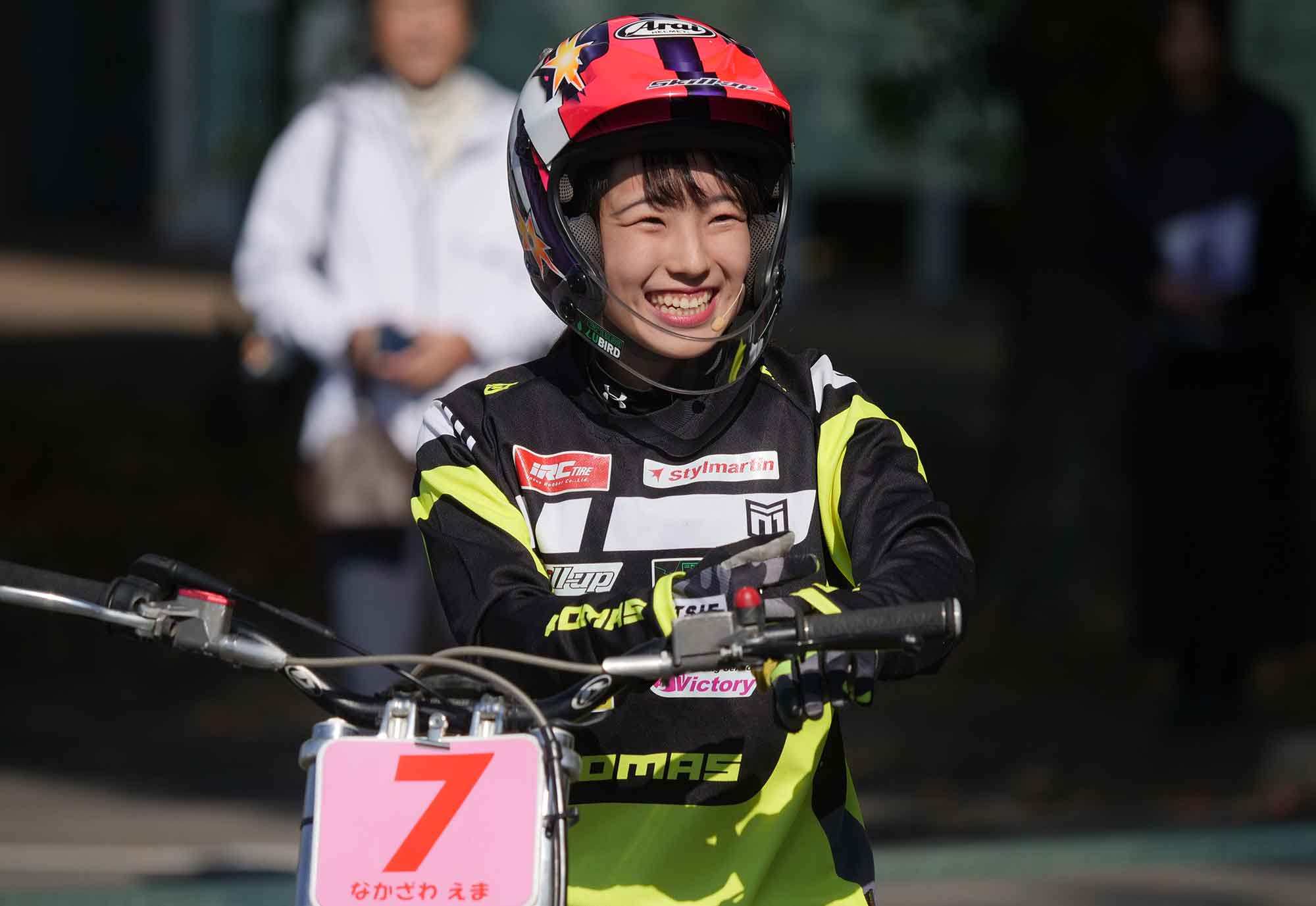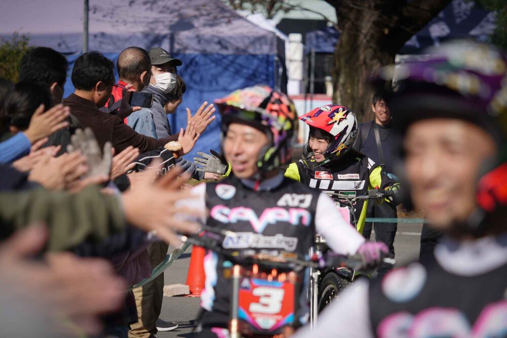 東京都出身の中澤選手は、トライアルを練習しやすい環境で学生生活を送りたくて、茨城県のオフロードパークSHIRAI、真壁トライアルランドに近い大学を選んで進学した。トライアル愛がすごい。学業とアルバイトに励みつつ、トライアル練習に精を出す。一方、全日本選手権の遠征では、家族のサポートが欠かせない。瑛真さんにオートバイの楽しさを授けたのはお父さんだった。家族はいまでもしっかりつながっている。