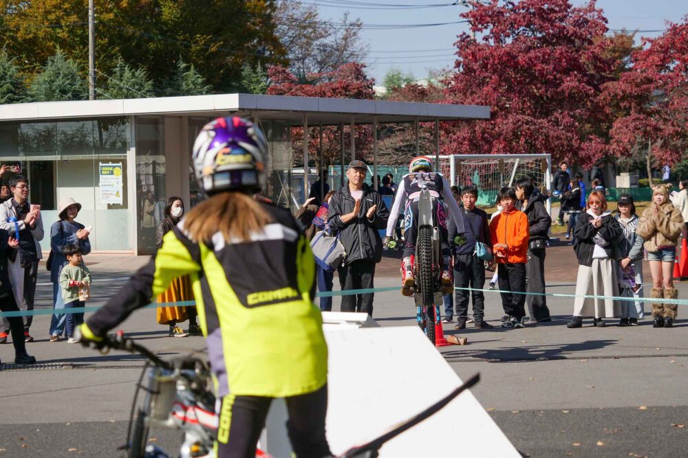 このイベントを企画したのは、中澤瑛真さん。実は中澤さんは作新学院大学に在学中の大学生だ。作新祭には外部団体共同企画イベントがいくつかあって、自衛隊とのイベントや栃木プロレスなどがあったが、『トライアルバイクの実演』もその枠の一つだった。