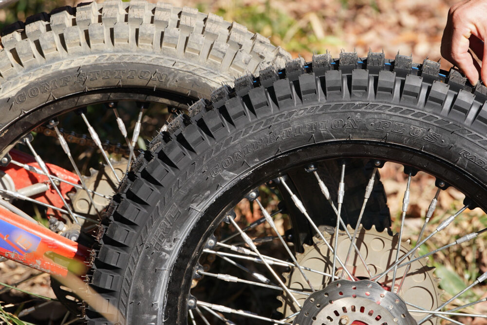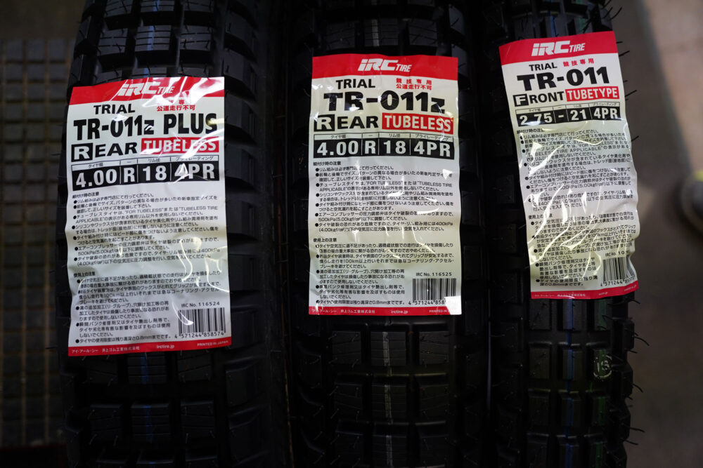 ちなみにIRCトライアルタイヤには、TOURIST、フロントタイヤを含めると4種類の現行モデルがある(現状では、旧型のTR-011も入手可能かもしれないので、となると5種類)。どれもTR-011までは名前が同じだから、判別にはちょっと気を使う。