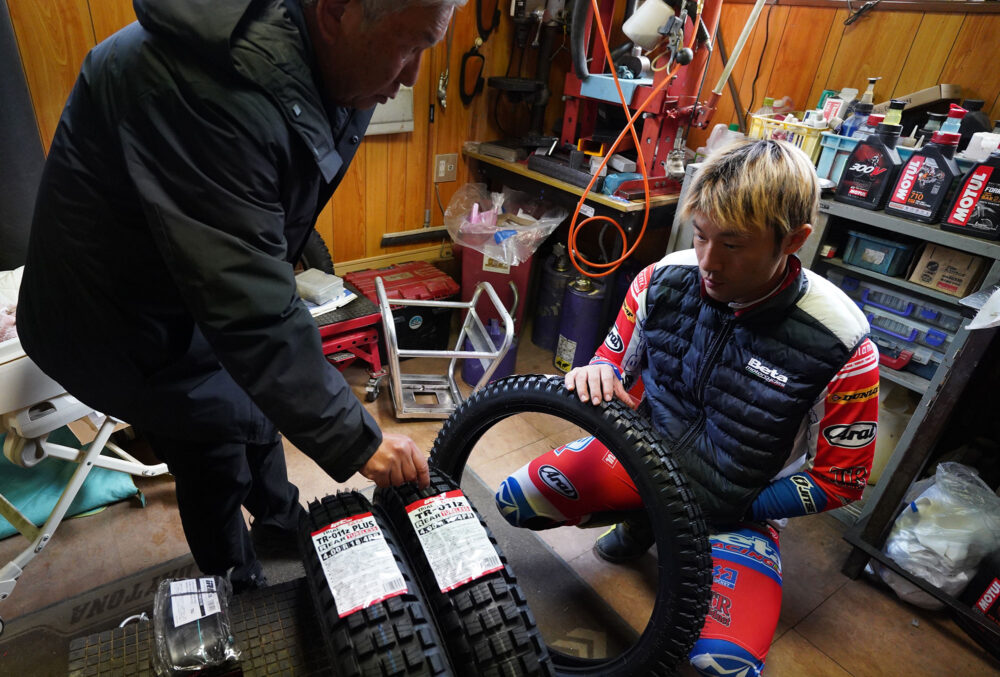 旧TR-011に乗ってもらうライダーを増やしていく一方、次なるTR-011の向かう先を決めて、それが2025年秋に、ようやく市販化された。中野さんは、このタイヤを日本のトップクラスが履いて大会に出場してくれたらと考えているが、今回はその第一歩で、小川毅士選手にTR-011zとTR-011z PLUSの2種類の新生TR-011に乗ってもらった。