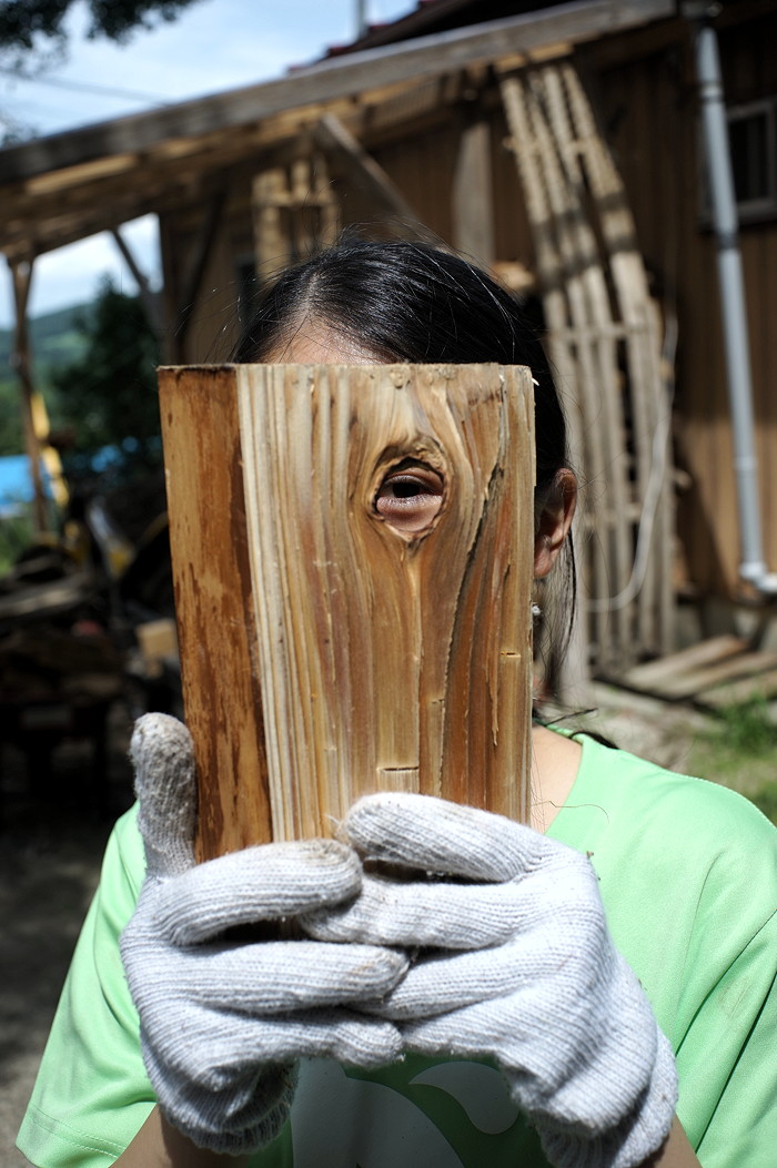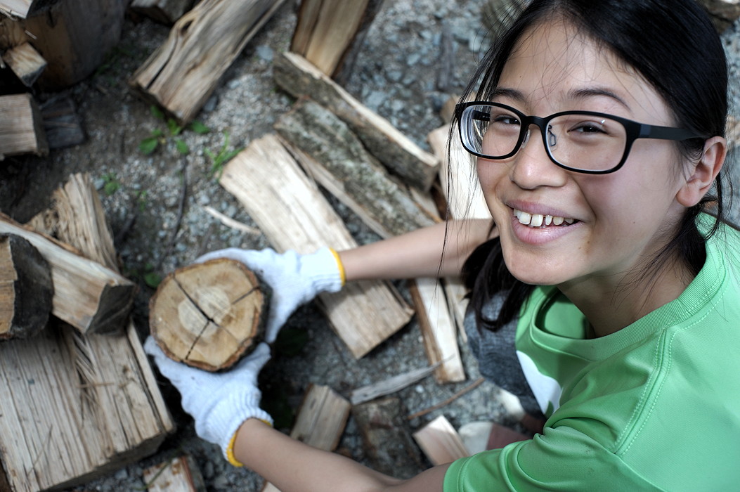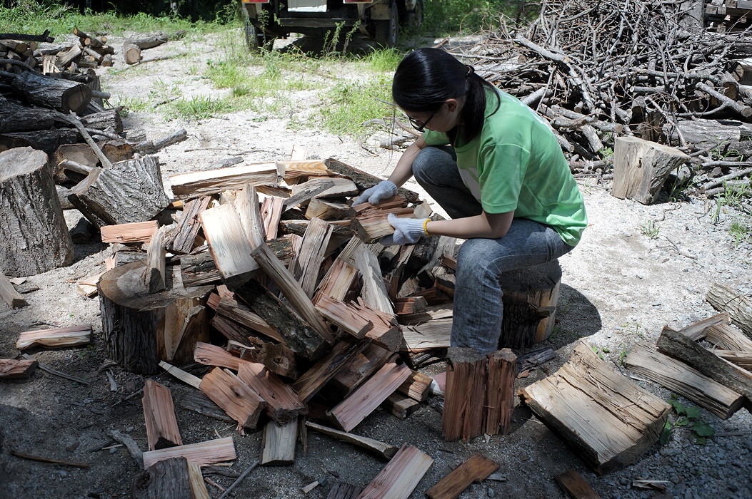 割られた薪の相手を探して、もとの丸木に復元していきます。ぴたりと割られた面が合うと、なんともいえない喜びを得ることができます。