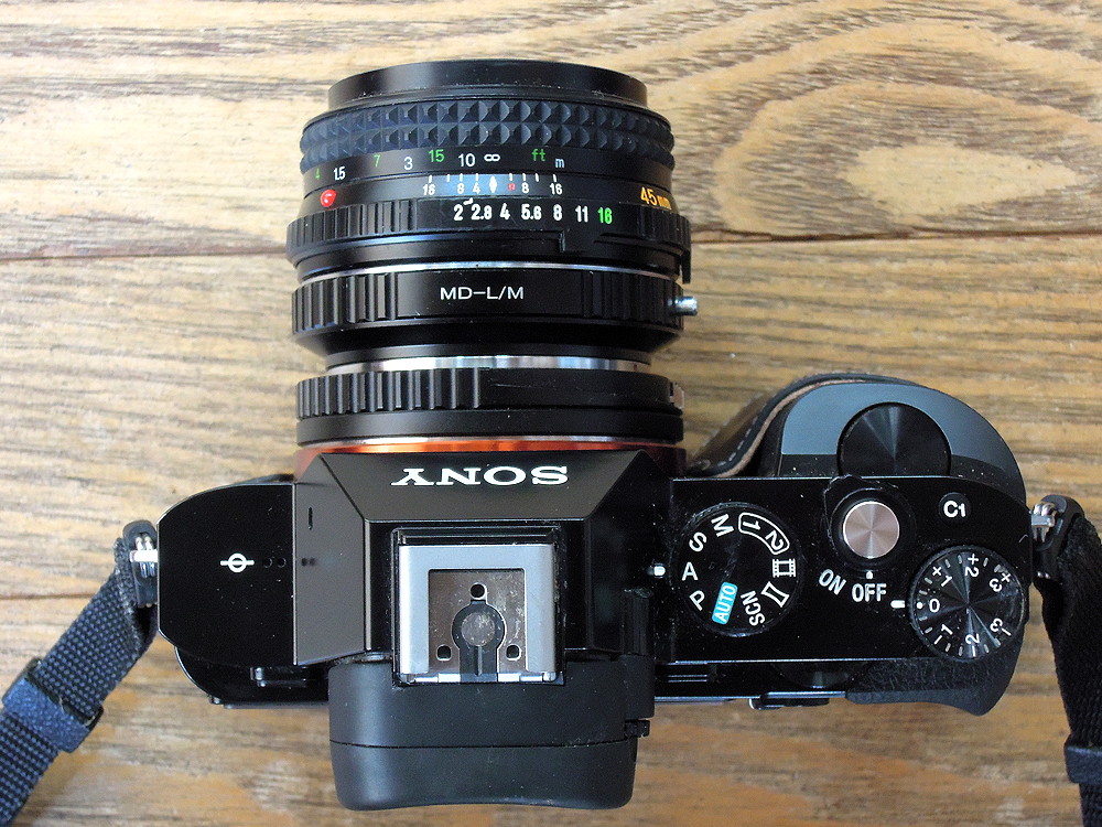 ソニーα7の場合は、ちゃんと使えます。35ミリレンズなら35ミリレンズとして使えるし、それどころか、一眼レフではミラーアップしないとくっつかなくて、なにが写るのかがわかんないまま撮影しなきゃいけなかったレンズまで、ちゃんとファインダーを確認しながら撮影することができます。すごい。