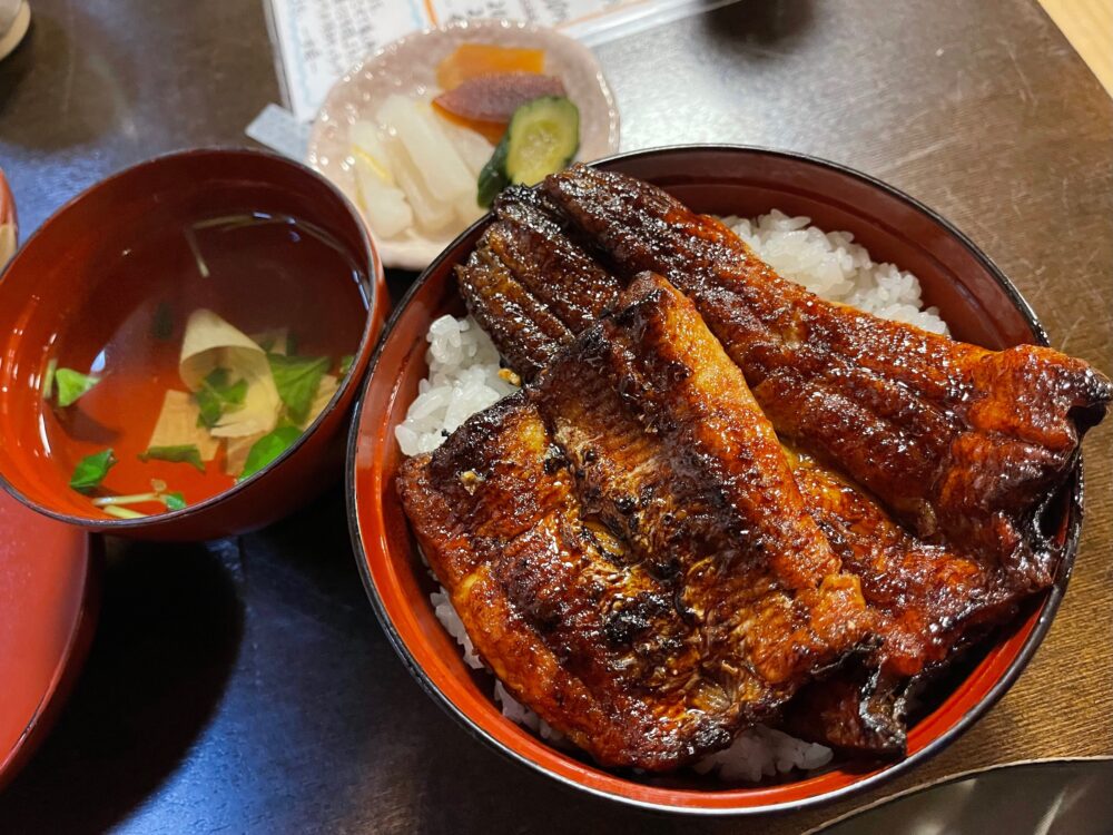 郡山の時代のうなぎが食べられなくなってしまい、最寄りの推しのうなぎ屋さんはここになった(もちろん、郡山にはまだまだうなぎ屋さんはたくさんあるけど、諸般の事情で勇気がなくて行けていないのであります)。ぼくはうな重よりうな丼のほうが好きで、こんなふうにおしゃれに二段になっているのより、最初からどんぶりにうなぎがのっているほうがお好み。メニューにはうな丼もあるから、それを頼む手もあるんだけど、やっぱりうな重にしてみました。
