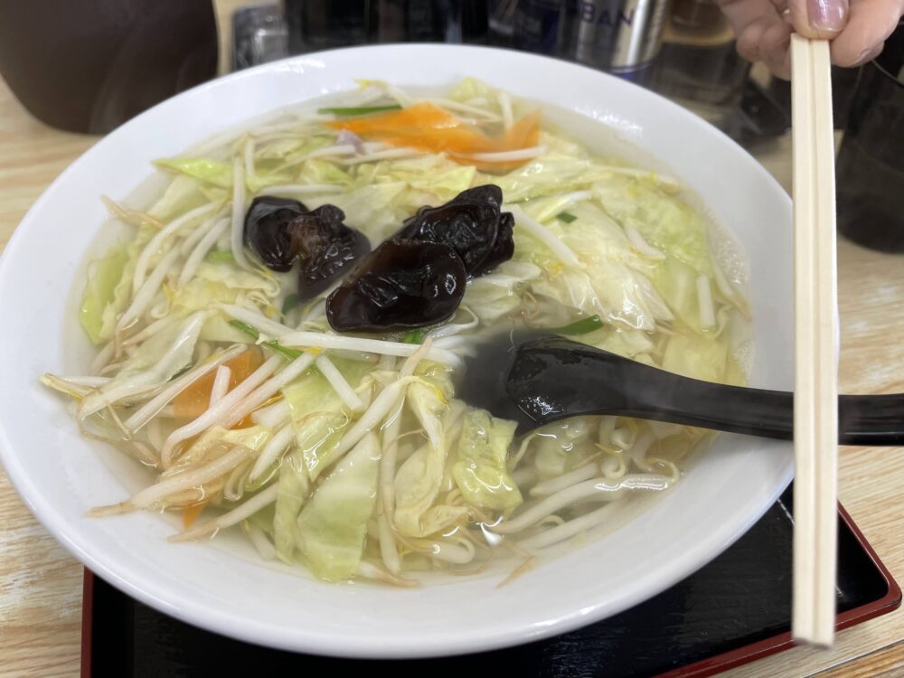 ラーメンの有名店なんだそうだ。喜多方ラーメンと白河ラーメンに囲まれて、このあたりのラーメンは醤油が基本なんだけど、こちらはタンメン専門。メニューはタンメンしかない。タンメンふつうか大盛りか、あとは餃子を食べるかどうかしか選択肢がない。大盛りには、麺大盛りと野菜大盛りがあるんだそうだ。