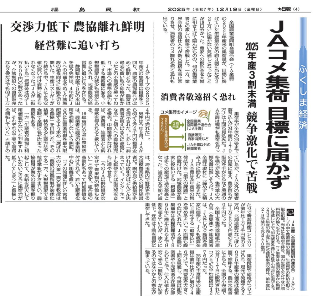 しかしでも、備蓄米は採算度外視で備蓄している。もともと商売としてお米を売る目的じゃないんだから。お米の値段は次の新米ができるまでの安定供給経費を含めて決まっていくけど、備蓄米はそこから何年も何年も保存している。経費はうんとかかっている。それが新米の半分くらいの価格で放出されるのだから、市場経済的には破綻している。でも一度出ちゃったから、うちはあれでいいや、と思う人は多かったんじゃないかな?