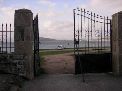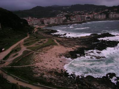 ここはホテルというより、もともとお城だったところ。だからよろいの兵隊さんが階段でオブジェになっているわけだが、外周を1周すると、周囲は外海がたたきつける岩がごろごろの海岸だった。なんと、この海岸ではスペイン選手権が開催されたことがあるという。熱海の海岸でトライアルやるより、もっと大胆な気がする。