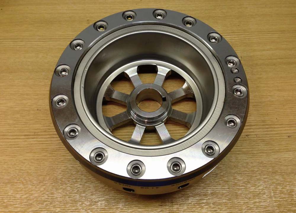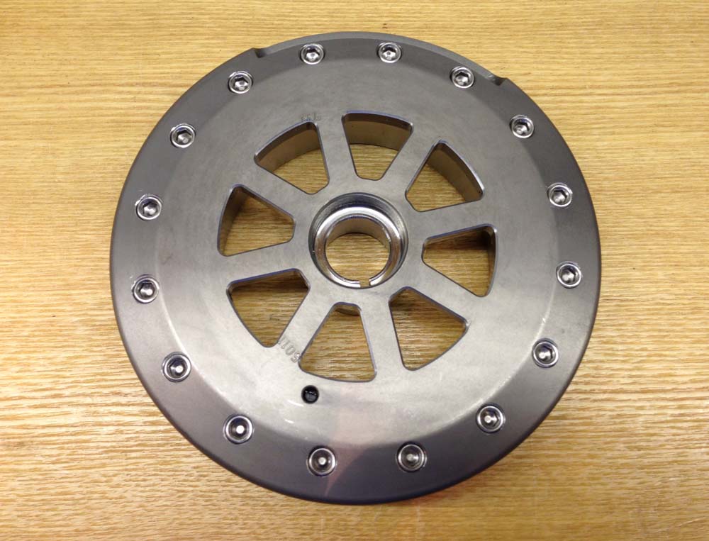 フライホイール外周に12〜16ヶ所、NCにより精密に穴をあけタングステンを入れることでフライホイールマス(慣性重量)を15%〜20%アップ。中心部分をNC精密軽量加工することで、スタンダードより本体重量は5g〜50gの軽量化となっている。