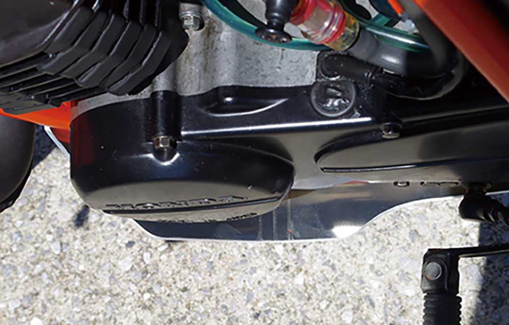 HONDA TLM50純正の樹脂製アンダーガードは強度不足です。最強アンガーガードは強靭な5mm厚17Sジュラルミン素材アルミで制作しました。デザインにもこだわり、皿ネジ取り付けにより美しくフラット。フレーム後部までしっか守ります。取り付けも簡単でシンプル。シルバーとブラックの2色あります。