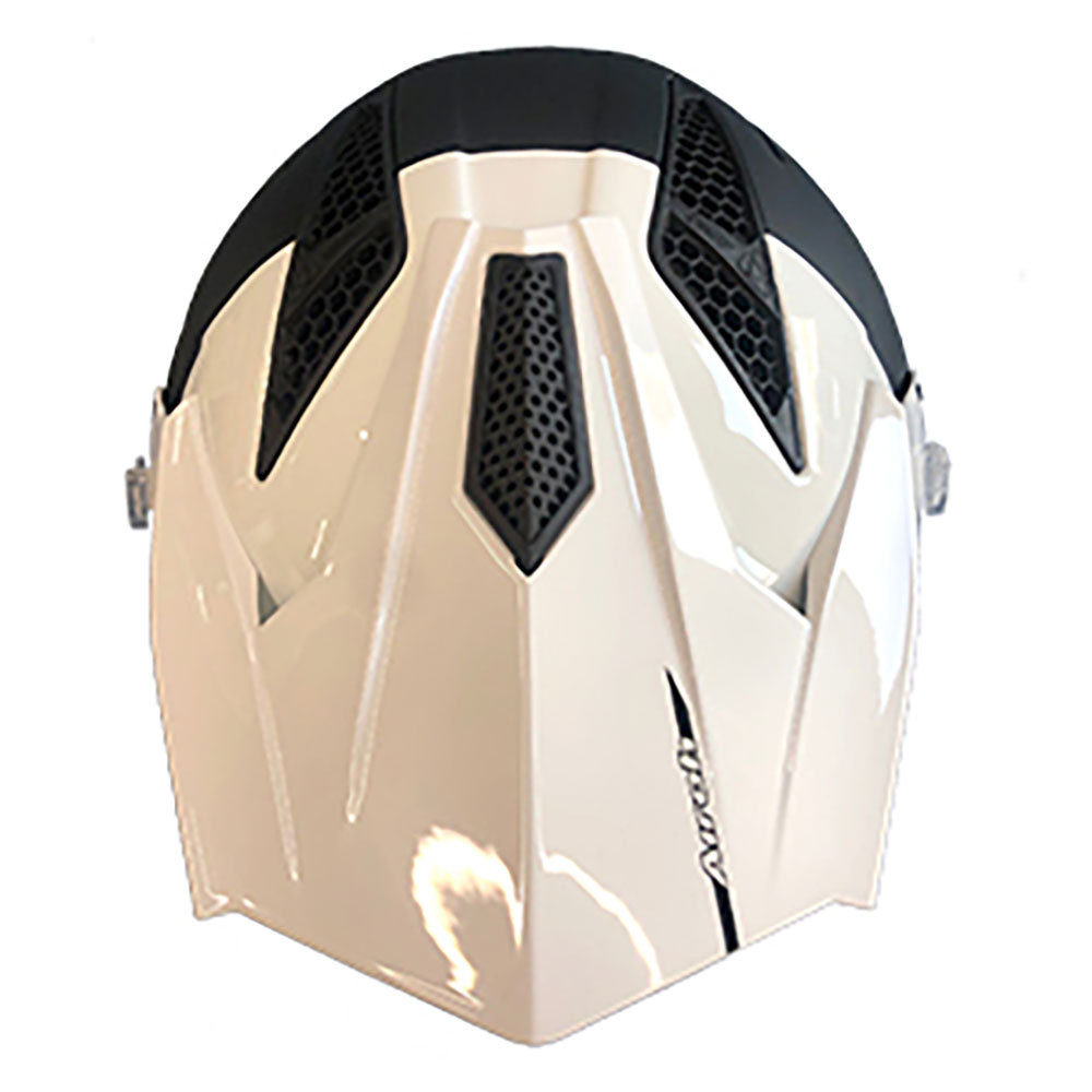 イタリアンデザイナーならではのツートンカラー。前頭部は艶ありのホワイト。後頭部は艶消しのブラック。斬新なデザインが新鮮です。重量も850グラムと超軽量。MFJ公認ヘルメット(MFJトライアル競技公認大会に出場できます。)◎サイズ:XS(53-54)・S(55-56)・M(57-58)・L(59-60)・XL(61-62)・XXL(63)◎カラー:WHITE/MATT BLACK (ツートンカラー)※艶ありのホワイト。後頭部は艶消しのブラック仕様です。◎重量:850g◎販売価格:29,000円(税別)